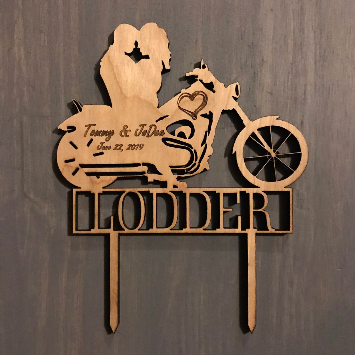 This cake topper features bride and groom on a motorcycle silhouette great for reception, wedding, party, anniversary or any special event! I am happy to make any alterations to make it specific for your needs.